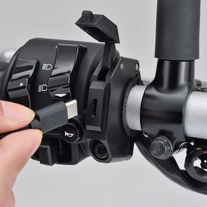 Stromversorgung für den Motorrad Lenker mit 1 USB-C Anschluss.