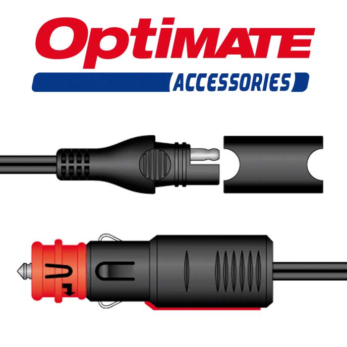 Schließen Sie Ihr OptiMate an die Fahrzeugsteckdose an. Dieses Zubehör passt sowohl für DIN-Steckdosen als auch Zigarettenanzünder.