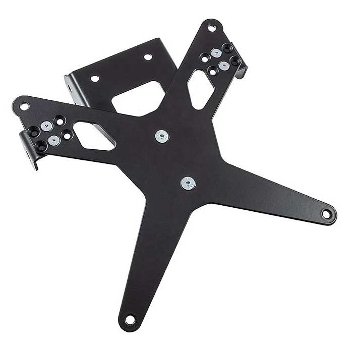 schwarz pulverbeschichtet der Kennzeichenhalter ist für jeden Kennzeichentyp geeignet (Breite 175 mm) es müssen keine Verkleidungsteile verändert werden Neigungswinkel ist lückenlos verstellbar Blinkerhalter sind in 3 Positionen verstellbar sehr gute Passform, sportliche Optik keine Eintragung erforderlich beim TÜV, ABE frei