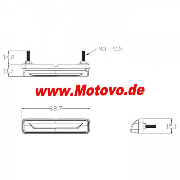 Maße: B 69 x H 12 x T 15 mm