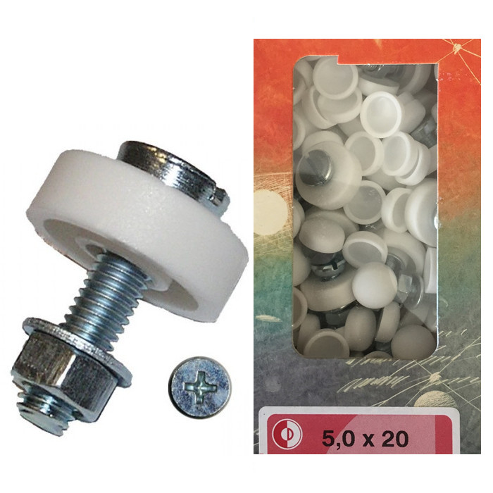 Nummernschildschrauben-Set "M5 x 20" 100 Stck verzinkt Kappen weiß