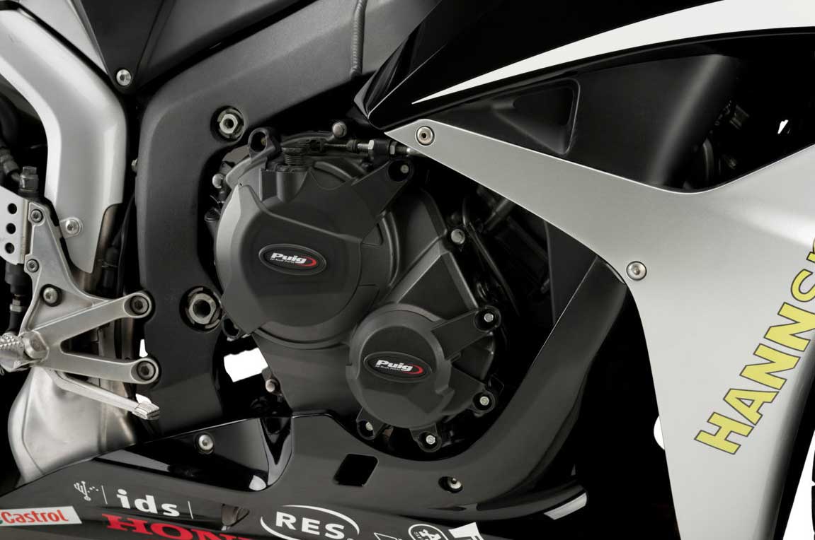 Um die Ästhetik des Motorrads zu erhalten, ist die Schutzabdeckung in matt gehalten und wird am Motorrad befestigt, indem sie auf es das Motorgehäuse schrauben.