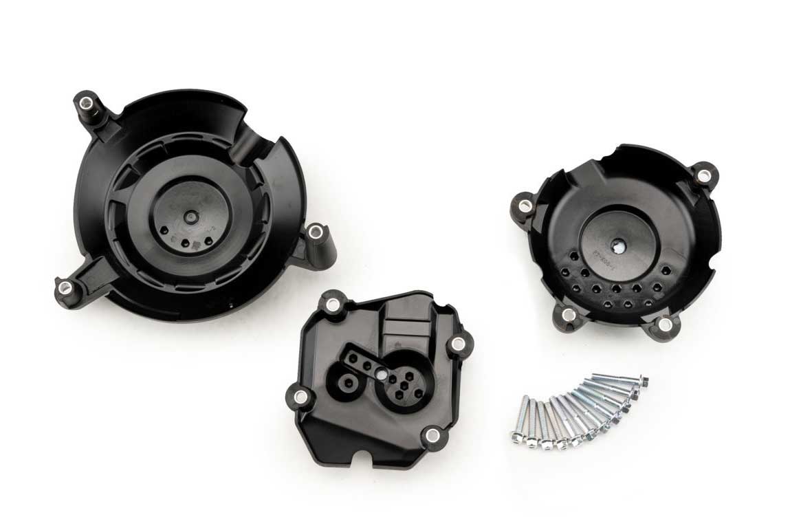 Um die Ästhetik des Motorrads zu erhalten, ist die Schutzabdeckung in matt gehalten und wird am Motorrad befestigt, indem sie auf es das Motorgehäuse schrauben.
