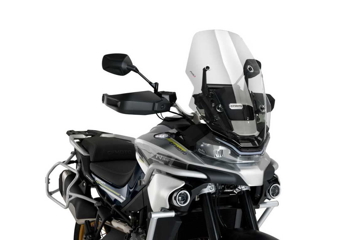 Die von Puig in Barcelona hergestellten Touringscheiben wurden mit dem Ziel entwickelt, den Fahrer aerodynamisch zu schützen, ohne seine Sicht auf den gelände zu beeinträchtigen. Darüber hinaus passen diese Scheiben dank ihrer großen Farbpalette und unterschiedlichen Größen perfekt zum Abenteuerstil und zur Ästhetik der Trail-Modelle.
