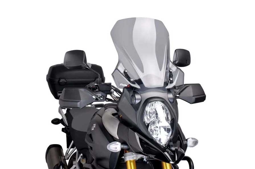 Die von Puig in Barcelona hergestellten Touringscheiben wurden mit dem Ziel entwickelt, den Fahrer aerodynamisch zu schützen, ohne seine Sicht auf den gelände zu beeinträchtigen. Darüber hinaus passen diese Scheiben dank ihrer großen Farbpalette und unterschiedlichen Größen perfekt zum Abenteuerstil und zur Ästhetik der Trail-Modelle.