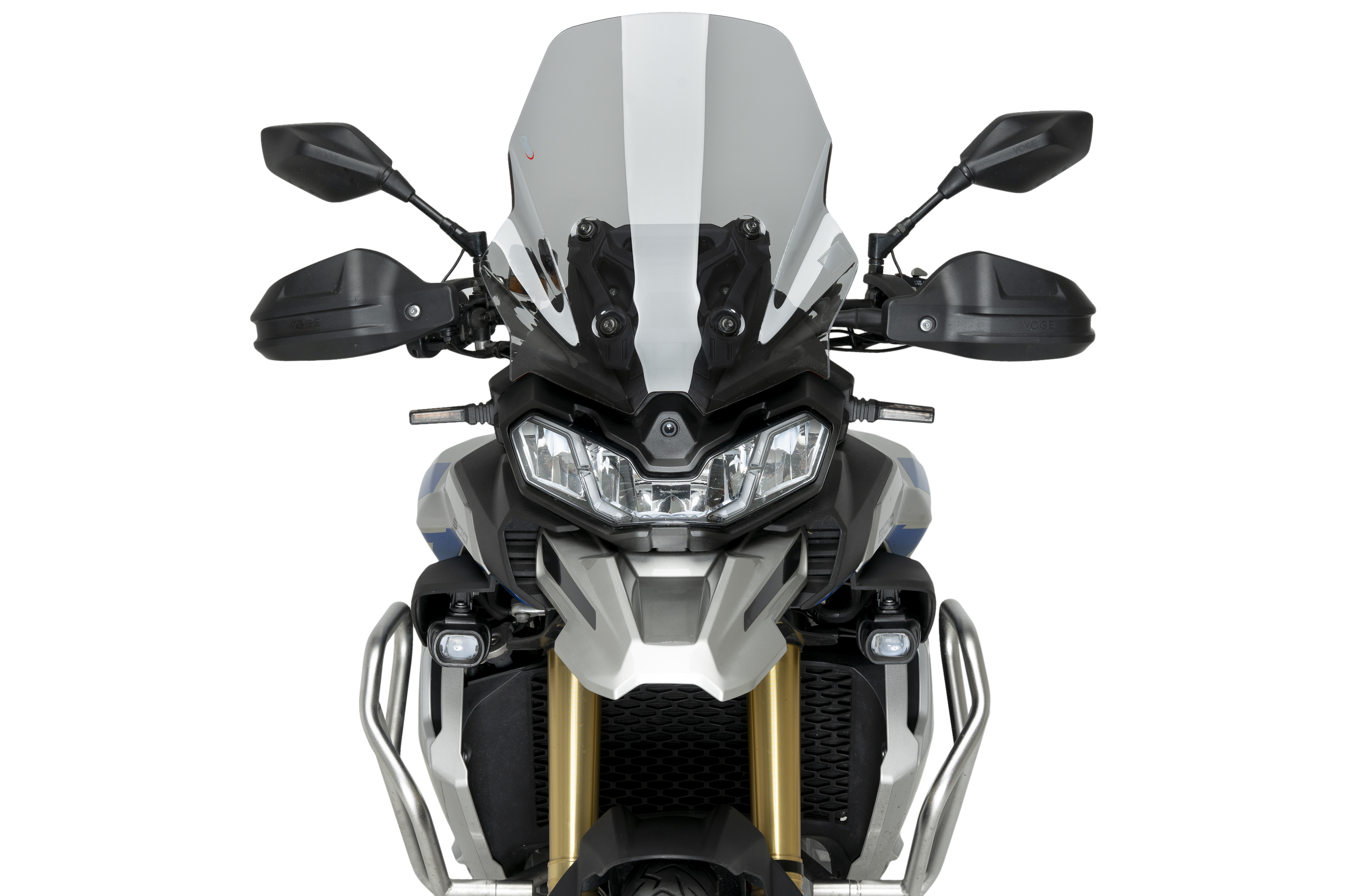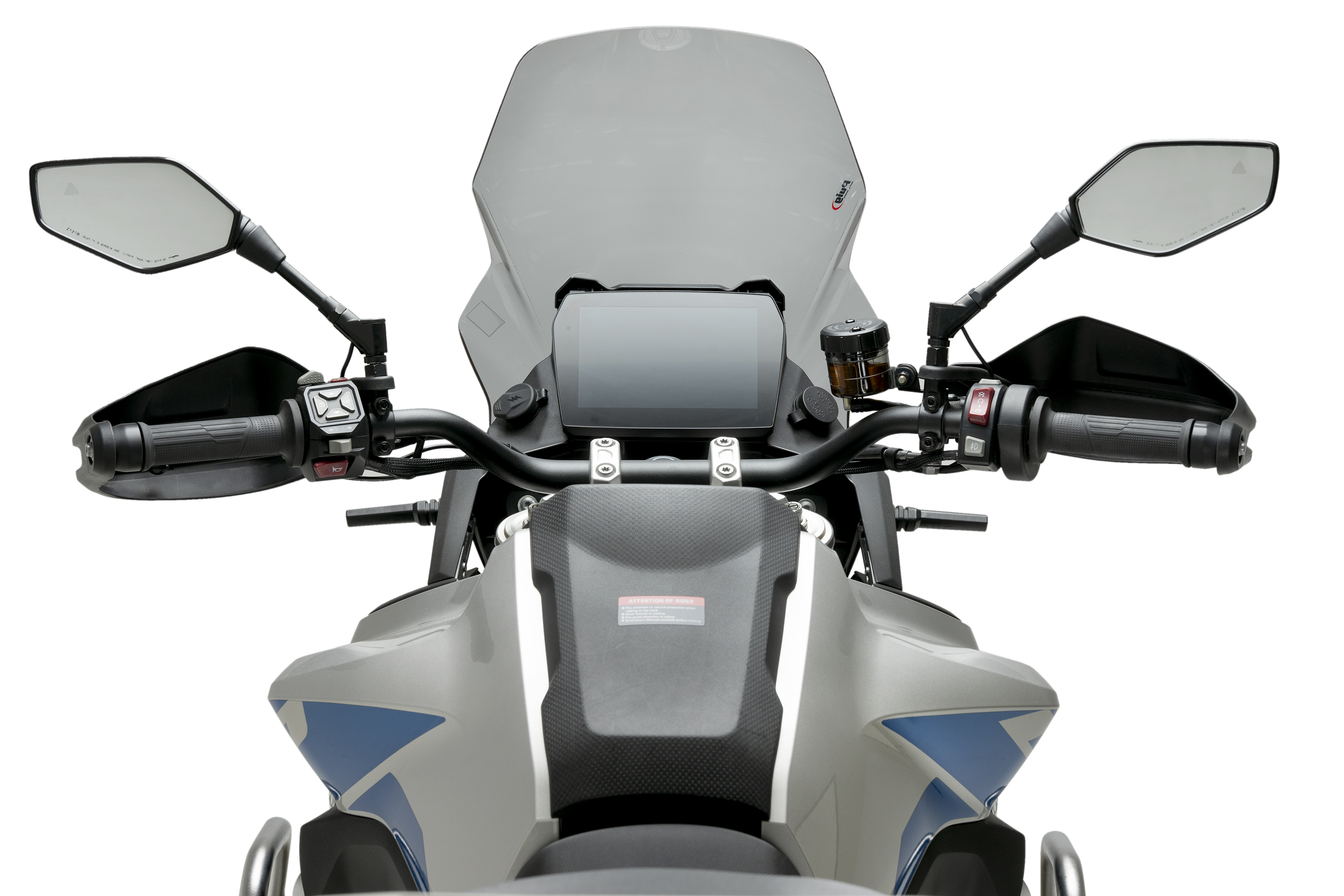 Die von Puig in Barcelona hergestellten Touringscheiben wurden mit dem Ziel entwickelt, den Fahrer aerodynamisch zu schützen, ohne seine Sicht auf den gelände zu beeinträchtigen. Darüber hinaus passen diese Scheiben dank ihrer großen Farbpalette und unterschiedlichen Größen perfekt zum Abenteuerstil und zur Ästhetik der Trail-Modelle.