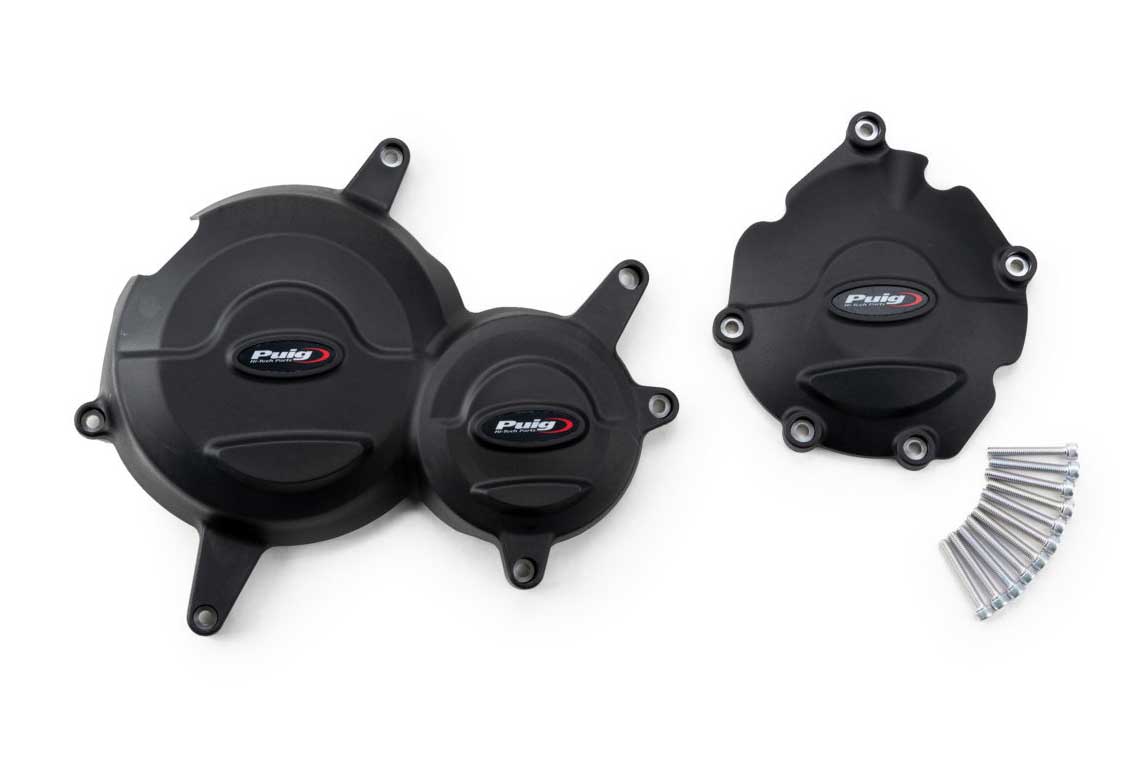 Um die Ästhetik des Motorrads zu erhalten, ist die Schutzabdeckung in matt gehalten und wird am Motorrad befestigt, indem sie auf es das Motorgehäuse schrauben.