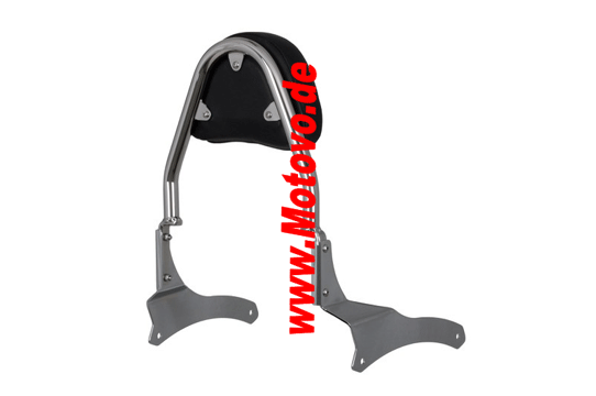 Die Sissybar de Luxe Mondial. Der Hauptrahmen des Sissy Bar besteht aus einem Rundrohr-Gestell und ist mit einem schön ausgeführtem Kissen ausgestattet. Ein Chromblende macht diese Sissybar zu einem besonderem Design, das nicht auf dem Motorrad fehlen sollte. Im Nachhinein ist es möglich diese Sissybar mit verschiedenen Modellen von Gepäckträgern auszustatten.