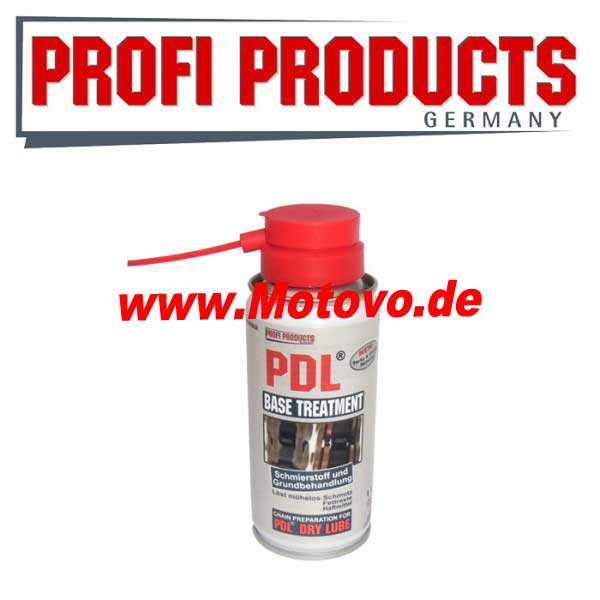 NEU - Ersetzt Kettenreiniger. PDL® BASE TREATMENT ist eine Zubereitung aus PDL®Profi Dry Lube Wirkstoffen kombiniert mit Reinigungskomponenten. Als Übergangsbehandlung - beim Fahren verwendet - wird die Kette nach kurzer Zeit sauber und ist für die Profi Dry Lube Kettenschmierung vorbehandelt.