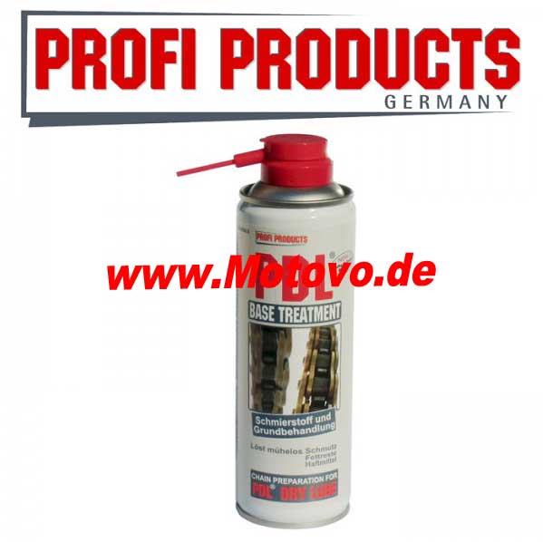 NEU - Ersetzt Kettenreiniger. PDL® BASE TREATMENT ist eine Zubereitung aus PDL®Profi Dry Lube Wirkstoffen kombiniert mit Reinigungskomponenten. Als Übergangsbehandlung - beim Fahren verwendet - wird die Kette nach kurzer Zeit sauber und ist für die Profi Dry Lube Kettenschmierung vorbehandelt. Die 300ml Dose für Werkstätten ist sehr ergiebig.